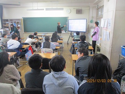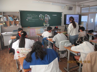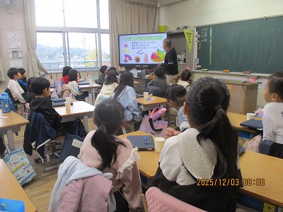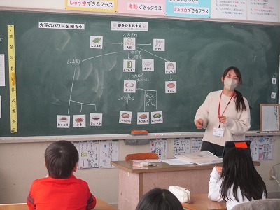 4日、3年生が食育の授業を行いました。「大豆のパワーを知ろう」ということで大豆の栄養について学習しました。12月の給食を調べても、大豆は色々な料理に使われていることも学びました。姿を変える大豆はみんなの体を作ってくれています。