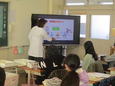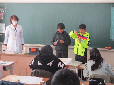 4日6年生が、薬剤師さんを招き、「薬の正しい使い方」の授業を行いました。薬を飲むタイミングや量、何で飲むかなど説明していただきました。お茶で飲むと薬が固まり、溶けにくくなる実験なども行いました。薬の飲み方は確認して正しく飲まなければいけませんね。