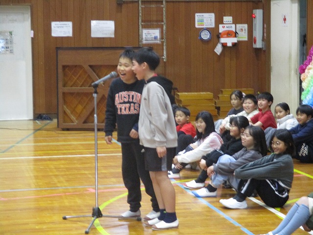 4年生は、名コンビによるショート漫才でスタート。担任の先生をユーモアたっぷりにディスるコントに、会場は爆笑の渦に包まれました。この2人の出演は、6送会の名物となっています。