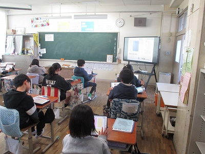 たんぽぽ学級の1年生と3年生は、総合の時間にプログラミングの授業を行いました。ボタンを押すと、キャラクターがジャンプしたり歩いたりする仕組みを学びました。タブレットを使い、指令を入力してプログラムを作成しました。子どもたちは、自分が作ったオリジナルのプログラムが完成し、キャラクターが指示通りに動くと、とても喜んでいました。
