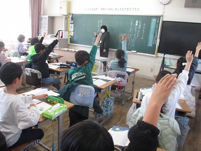 3年B組は国語の授業で「モチモチの木」を学びました。お家の方に自分たちが国語の授業で頑張る様子を見てもらいたいという子どもたちのリクエストにより実現しました。授業では登場人物の心情の変化を丁寧に読み取り、積極的に発表する姿がたくさん見られました。