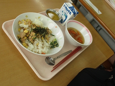 1月30日は、三重県のブランド野菜「三重なばな」を使った「なばなのちらしずし」や、甘みが増した三重県産さつまいも入りの「具だくさん汁」を提供しました。