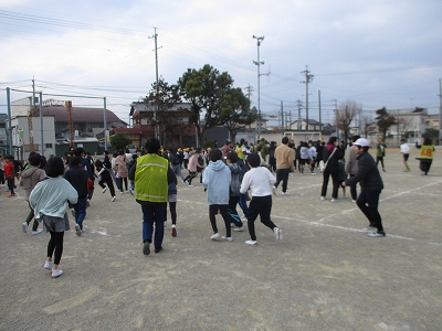 今回は事前に子どもたちに知らせず、予告なしの訓練としました。非常ベルを鳴らした後、放送で訓練であることを伝え、運動場への避難を指示しました。子どもたちは決められた避難経路を通って運動場へ避難し、所定の場所に整列しました。