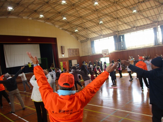当日は地域の皆様約100名にご参加いただき、本校の児童も多数参加しました。お年寄りの方や体力に自信のない方でも簡単に取り組める内容で、1時間ほど楽しく体を動かしました。