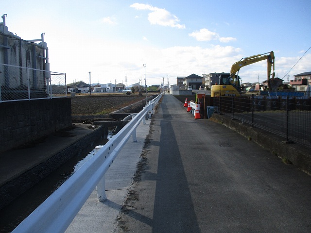 なお、北側の排水路では引き続き工事が行われており、一部に重機が置かれていますが、歩行者への影響はありません。