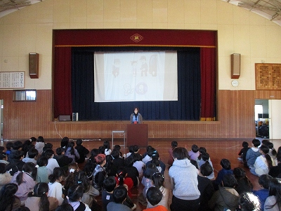 さらに、生徒指導の先生からは、冬休みの生活で気をつけたいことについてお話がありました。スライドを使いながら、緊急車両(救急車など)にお世話にならないよう安全に過ごすことや、交通ルールを守る大切さについて改めて確認しました。