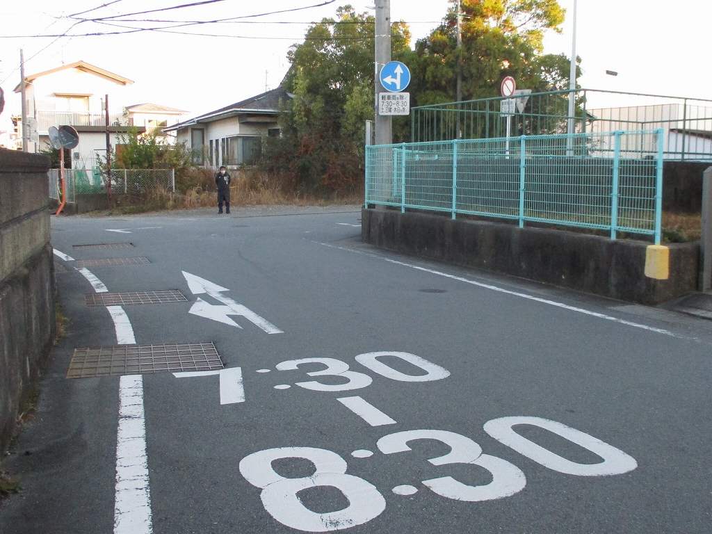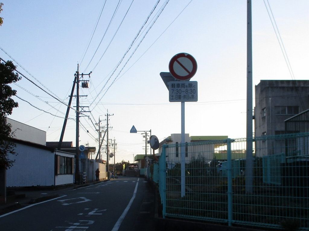 道路交通法により、午前7時30分から8時30分までの間、自動車およびバイクの通行が禁止されています(ただし、該当区間にお住まいの方などの許可車両を除きます)。
