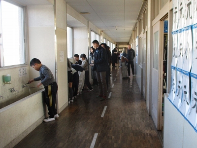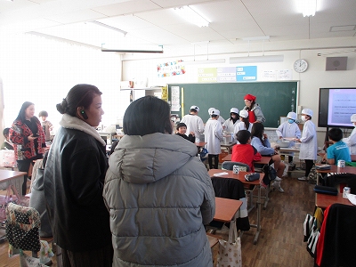 視察では、浜郷小学校の給食の配膳や掃除の様子を見学し、学校生活全般についての説明を校長が行いました。