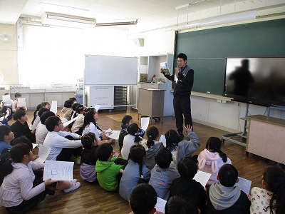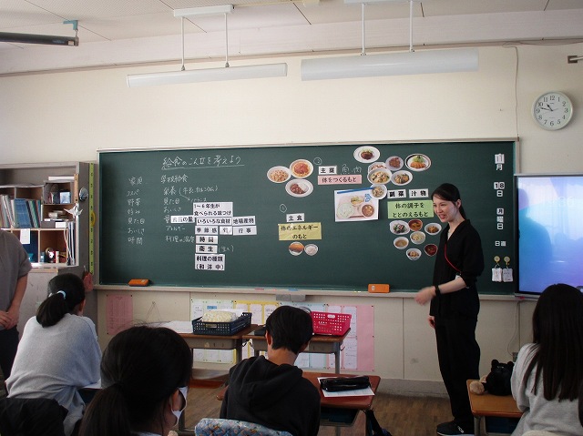 6年生は、家庭科の時間に栄養教諭の先生に来ていただき、給食の献立作りについて学習しました。