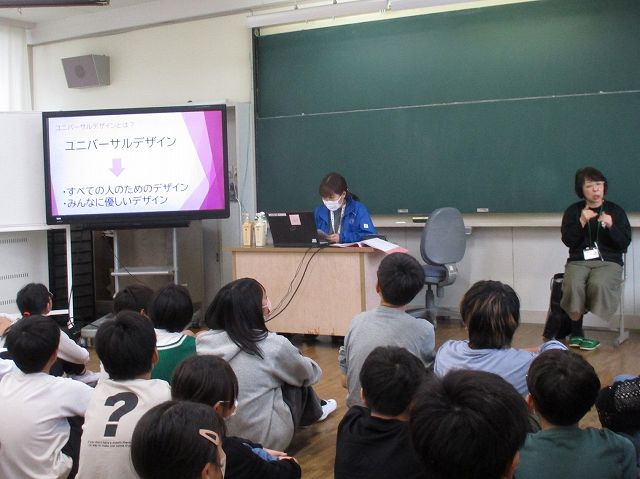 まず、社会福祉協議会の職員から、スライドを用いた「ユニバーサルデザイン」についての説明がありました。
