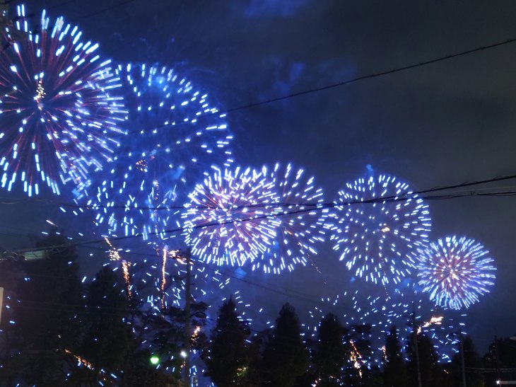 今日はたまたま琵琶湖で花火が上がり、部屋から見ることができました。