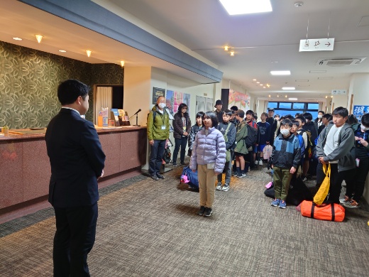 ホテルに到着すると、まず児童会の代表がホテルの方に挨拶をし、その後、各自の部屋に入ってから部屋長会議を行いました。