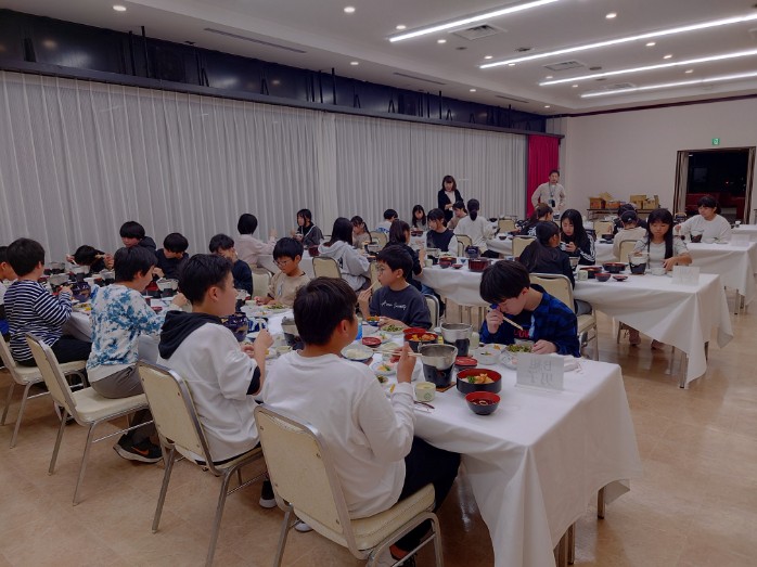 ホテルでの夕食です。豪華なメニューにみんな大喜びで、ごはんをおかわりする子もたくさんいました。