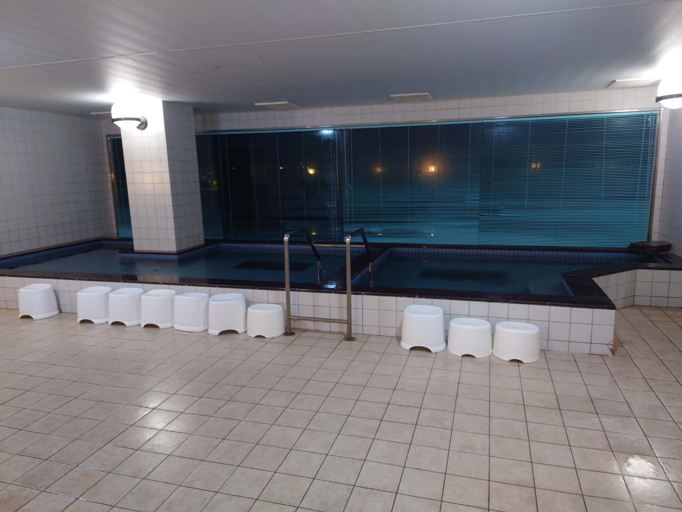 宿泊先は和風ホテルで、温泉大浴場があります。夜なのでよく見えませんが、琵琶湖が一望できます。