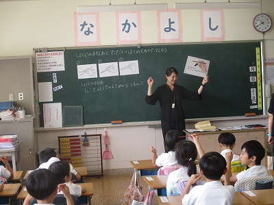 1年生は栄養教諭の先生に来ていただき食育の授業を受けました。今回の内容は食事のマナーと正しい箸の持ち方についてです。