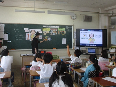 3年生は栄養教諭の先生に来ていただき、朝ごはんの大切さを必要な栄養素について学びました。