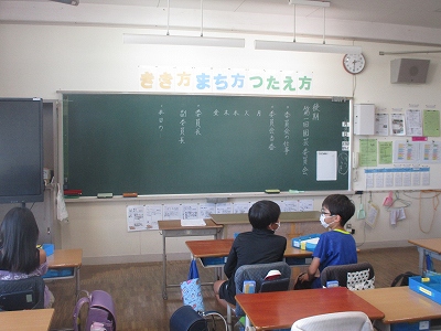 委員会では、後期の正副委員長の選出が行われ、月間目標や当番が決定されました。また、各委員会の活動場所で仕事の説明も行われました。