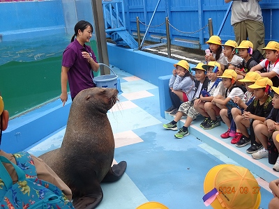 館内で子どもたちはトドやアシカのショーを見たり、タツノオトシゴに触れたり、近距離でペンギンを観察したり、みんな大喜びでした。たくさんの海の生物との触れ合いを満喫でき、とても楽しい社会見学でした。