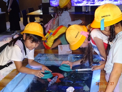 鳥羽水族館では、3グループに分かれ、アシカショーを見たり、ラッコ、スナメリなどの海の生き物を見たり、実際に海の生き物に触れることができるコーナーで体験したり、みんな1日楽しむことができました。