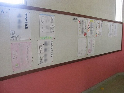 20日の後期児童会役員選挙に向けて、立候補者は選挙運動を行っています。2か所の階段の踊り場には、選挙ポスターが貼られています。今日は立会演説会のリハーサルが行われれ、明日いよいよ本番を迎えます。