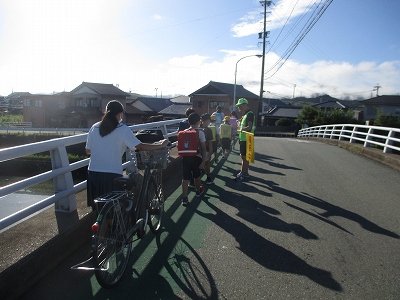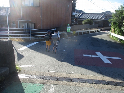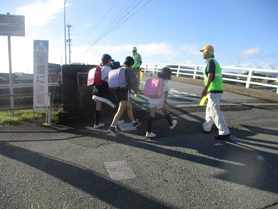 勢田大橋付近では毎朝、田尻町自治会の皆さんが子どもたちの登校の見守りをしていただいております。