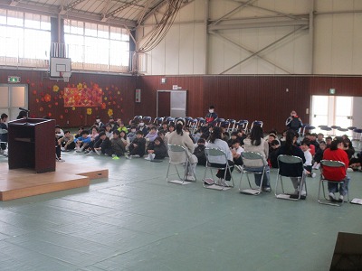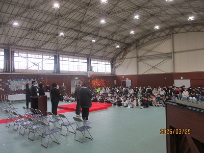 本日、修了式が行われました。 式の中では、全員の進級を発表し、「4月は一回り大きくなった皆さんに会えるのを楽しみにしています」と励ましの言葉を伝えました。離任式では、離任される先生方から最後のお話がありました。子どもたちが名残惜しそうに涙を流す様子も見られ、先生方との深い絆が感じられました。保護者の皆様、この一年間、本校の教育活動へのご理解とご協力、ありがとうございました。