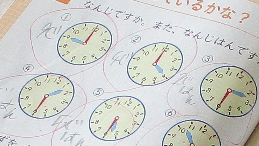 びっくりしたのは、わかっている子どもたちが多かったことです。「そんなのかんたん!」と言いながら「2時」「5時半」・・・と答えていきます。