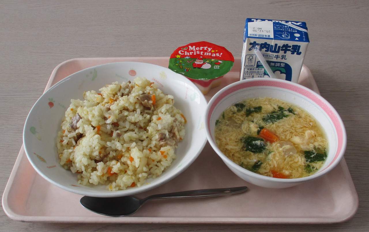 もうすぐ冬休み。2学期がんばった子どもたちへのプレゼント給食のようですね。