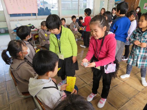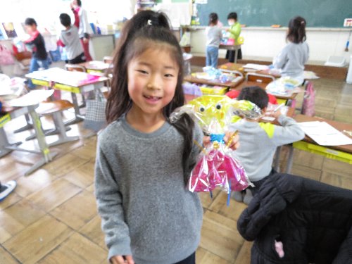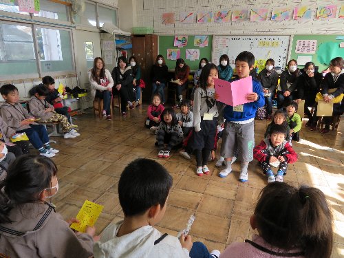 2月8日、4月に入学予定の子どもたちが来校し、現1年生・2年生と交流をして楽しみました。1年生・2年生の子どもたちは、この日に合わせてプレゼントを手作りしたり司会進行の練習をしたりいっしょうけんめい準備していました。