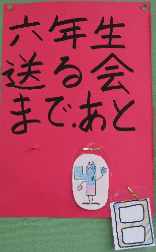 5年教室には「6年生を送る会まであと、○日」の送る会カレンダー。6年生教室には「卒業まであと、○日」の卒業までのカウントダウン・カレンダー。それぞれ自分たちの目標に向けて、力を合わせてがんばっています。