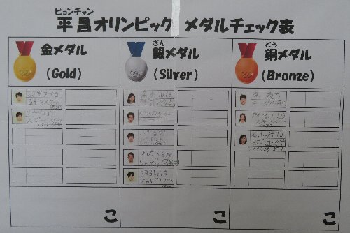 そして韓国・平昌では、連日日本選手の活躍が続いています。2年生は新聞やニュースへの興味付けとして「平昌オリンピック・メダルチェック表」を活用。世界に向けて夢と希望がふくらみます。