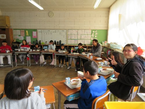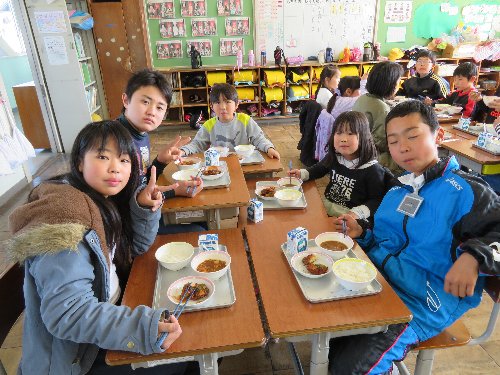1年生と6年生が人数の半分ずつを入れ替えて、1年教室と6年教室で交換給食を行いました。かわいい1年生との給食に6年生はちょっと照れながら笑顔で接していました。こうやって6年生と過ごすのもあと2週間あまり。短い期間ですが、思い出をいっぱいつくりたいですね。