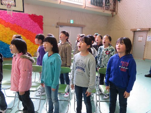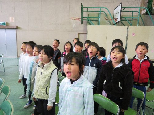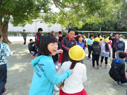 16日、大好きな6年生が巣立ちの日を迎えました。感謝の気持ちのこもった呼びかけと歌声で見送った在校生。12日に児童会主催で行った「仲間探しゲーム」は、全校でする今年度最後の思い出となりました。