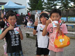 7月14日、東大淀保育園の夕涼み会が行われました。実はこの日、学校では朝からその話題で持ちきり。「夕涼み会、そのかっこうで行く?」などの声もとびかい、それもそのはず。会場ではゆかたや甚平でかっこよくキメた保育園児・小学生がいっぱいでした。いろいろなゲームやふくびきのコーナーには長蛇の列が‥。りっぱなカブトムシがもらえるチャンスも。保育園の皆様、保護者役員の皆様、楽しい会をありがとうございました。