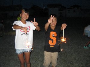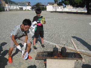 またキャンプと言えば、飯ごう炊さん。慣れない火起こしに苦戦している班もありましたが、薪を燃やして火加減を調節しながら、どの班もおいしいご飯が炊けました。花火が長持ちした時間を競う線香花火大会も、楽しい企画。東大淀の「ここでしか」できないすばらしい思い出ができました。