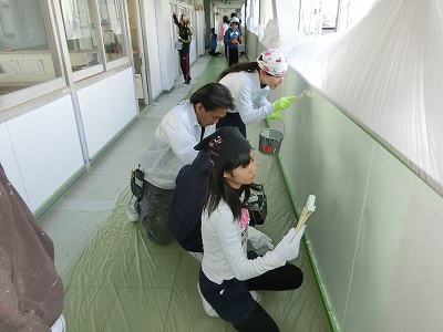 11月18日(金)、ボランティア団体『日本塗り替え研究会』の皆様の協力を得て、5・6年生で1階と2階の廊下のペンキ塗りを行いました。