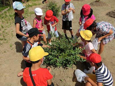 7月13日(月)9:00から、東大淀地区まちづくり協議会環境部会の皆様のご協力を得まして、ブルーベリーの収穫体験を行いました。1・2・3年生を中心に5年生がサポートする形で行いました。貴重な体験ができ、子どもたちはとても喜んでいました。