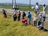 5年生が、社会科・総合的な学習の時間の一環として、市役所農林水産課・JA伊勢・アグリトラスト・地元の西村さんのご協力を得て、5月1日(金)に田植えを行い、9月11日(金)に稲刈り体験をしました。手作業でしたので、残った部分は後日機械で刈っていただきました。その時取れたお米を精米し、9月29日(火)、学校に届けていただきました。関係者の皆様、ありがとうございました。有効に活用させていただきたいと思います。