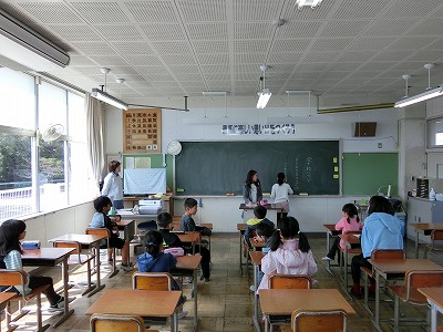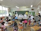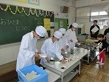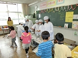 1年生は初めての給食なので、6年生がお手伝いをしてくれます。6年生に感謝しながらおいしそうに食べていました。