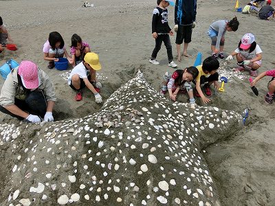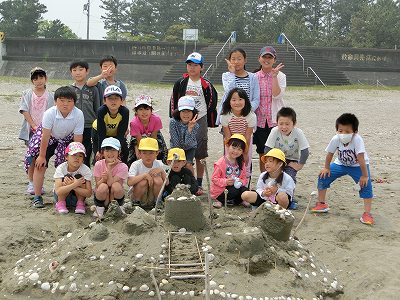 4月28日(火)、遠足で大淀海岸に行ってきました。縦割り班でサンドアートを制作したり、広場で遊んだりと楽しいひと時を過ごしました。朝早くからお弁当の準備等をしていただきありがとうございました。