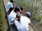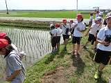 5年生が、5月1日に田植えを行った田を、本日29日(金)に見に行ってきました。田に張る水の量の調整や草刈りなど、特別非常勤講師の西村先生がよく手入れをしていただいているおかげで、稲は元気にすくすくと成長し、その様子を見た子どもたちはとても感動していました。