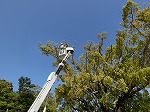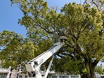 4月24日(木)に、くすの木さんの傷んでいる枝を高所作業車を使い、切っていただきました。この作業により、子どもたちの安全確保につながりますし、また、くすの木さんも元気になると思います。