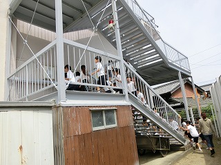 本日3日(火)10:00から、避難訓練を行いました。大規模地震が起き、津波に対応するために校舎屋上へ避難をするという想定でした。子供たちはよく約束を守り、上級生が下級生を助けながら手際よく避難することができました。