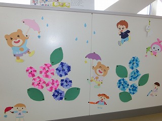 本日5日(木)、教育支援ボランティアで来ていただいている3人の方に、図書館廊下飾りの衣替えをしていただきました。いつも季節感あふれる飾り付けをしていただき、子供たちも大変喜んでいます。