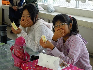 みんな、大好きなおにぎりやドーナッツ、パンをほおばる顔は幸せそう、そのものでした。