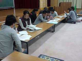 写真は、本部の引き継ぎ、各部会の引き継ぎ風景 です。
