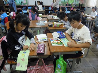 3年生は、友だちの絵と書写、そして和を感じさせるランプシェードの制作発表、4年生は、秋の果実草花の絵画と書写、夢の国等をイメージした紙粘土作品の発表でした。立体作品も絵画も習字も力作が目立ちました。また、作品に自分の思いや作品メモがついていて、こどもたちの気持ちが伝わりました。