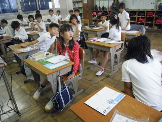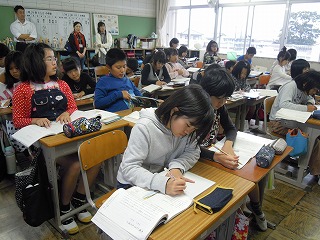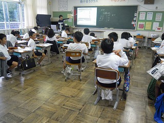 6年は、国語・総合・総合・書写・体育・社会の順の授業でした。2・3限の総合は、5年と合同の人権授業『貿易ゲーム』で、活発な活動が見られました。
