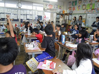 5年は、書写・総合・総合・算数・国語・算数の順でした。2・3限の総合では、『貿易ゲーム』という人権感覚を養う授業を講師の方に来ていただき、5・6年合同で行いました。真剣に、かつ楽しそうに、コミュニケーションや班での話し合いをして、授業を進めていて、講師先生方も、感心することしきり!!!
