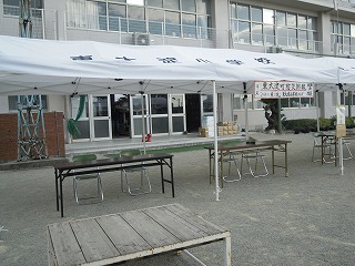 今日は、小学校の建っている東大淀町防災訓練の日。